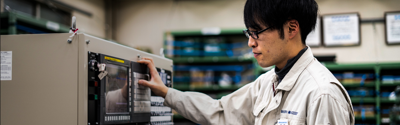 学生時代、機械電気制御工学を専攻していた。「学生時代に培ってきた情報技術の知識を活用しながら、新機能の考案や開発といった、当社にとって新しいような試みにも参加していきたいと思っています。」近年、AIやIoTの発達に伴い、スキルフリーで操業可能な産業機械が増えてきている。次々とパラダイムシフトが起こる中で、要求される機能や性能は増えるばかりだ。そこに彼の夢がある。「常にユーザーフレンドリーを起点に考えるというのが、私なりの考えです。」最大限の価値をお客様に提供するという信念のもと、常に新しい可能性を追求する。「高度な機械制御のスキルやノウハウを磨くために、まずは既存の機械の理解を深めているところです。」幅広い産業分野に対して、さまざまな機械設備を提供している大同マシナリーだから、実践を通して豊富な学びを得ることができる。